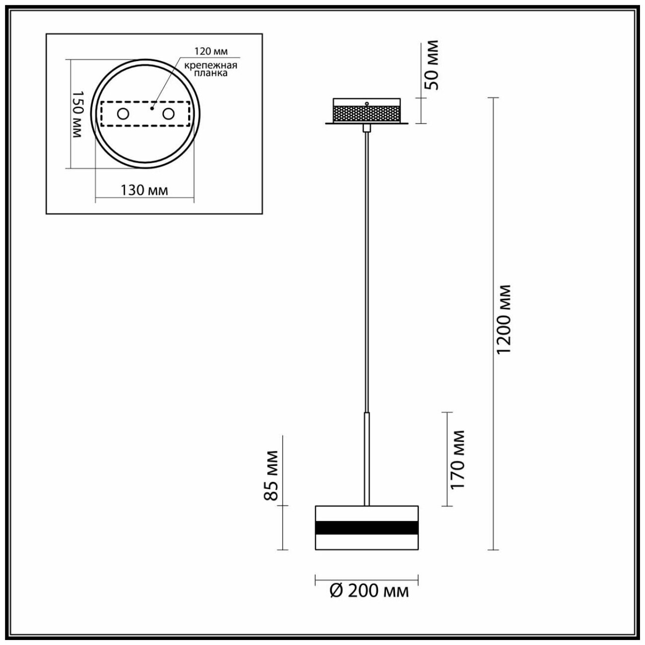 | Длина подвеса, мм | 945 |