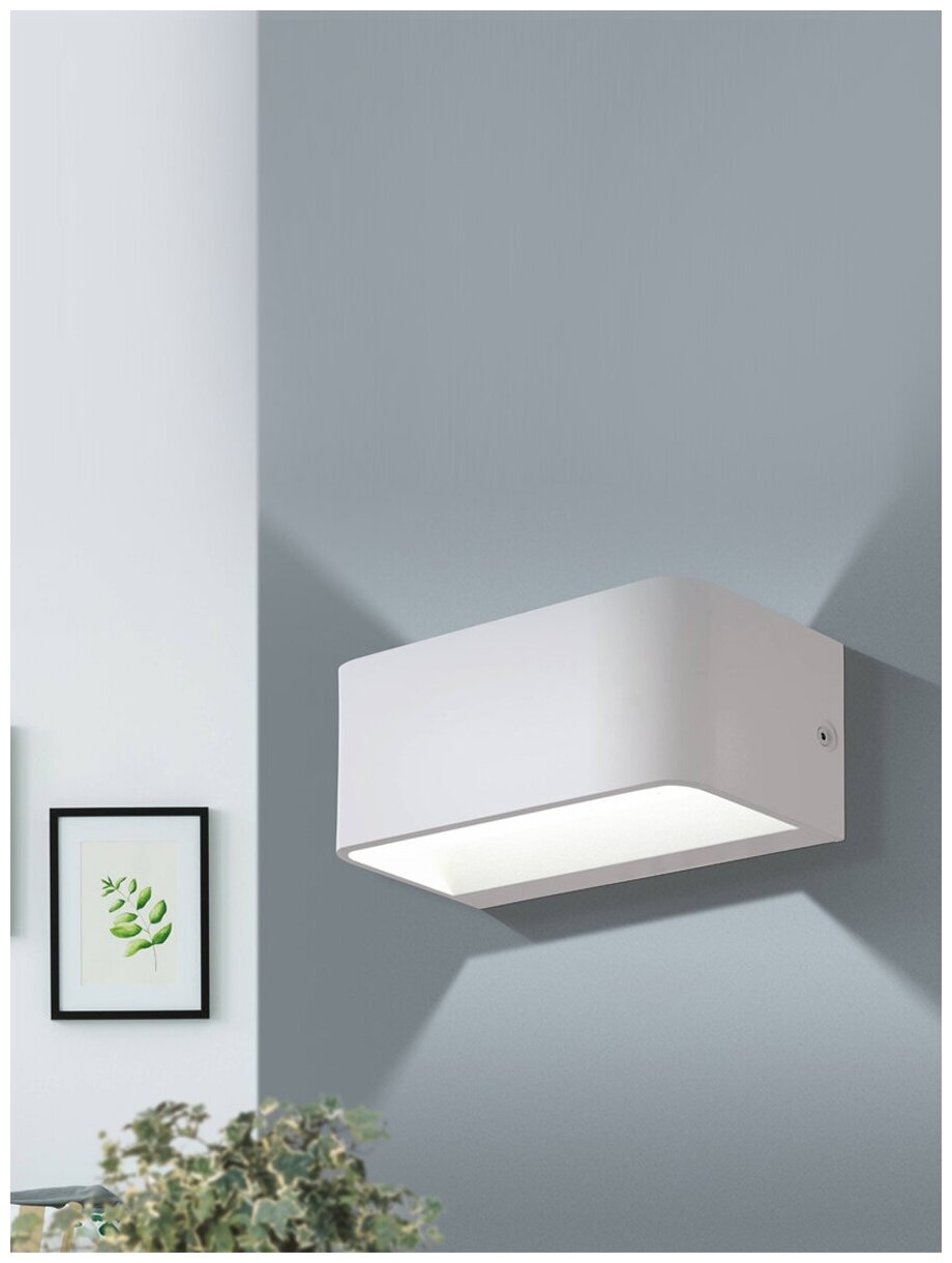 Настенный светодиодный светильник - продукт известной компании Eglo (Австрия). Имеет максимальную мощность 10 Вт, освещает площадь до 2 кв. м. Отлично подойдет для таких мест, как гостиная, прихожая и коридор, спальня, офис. Впишется в интерьеры следующих стилей: современный.