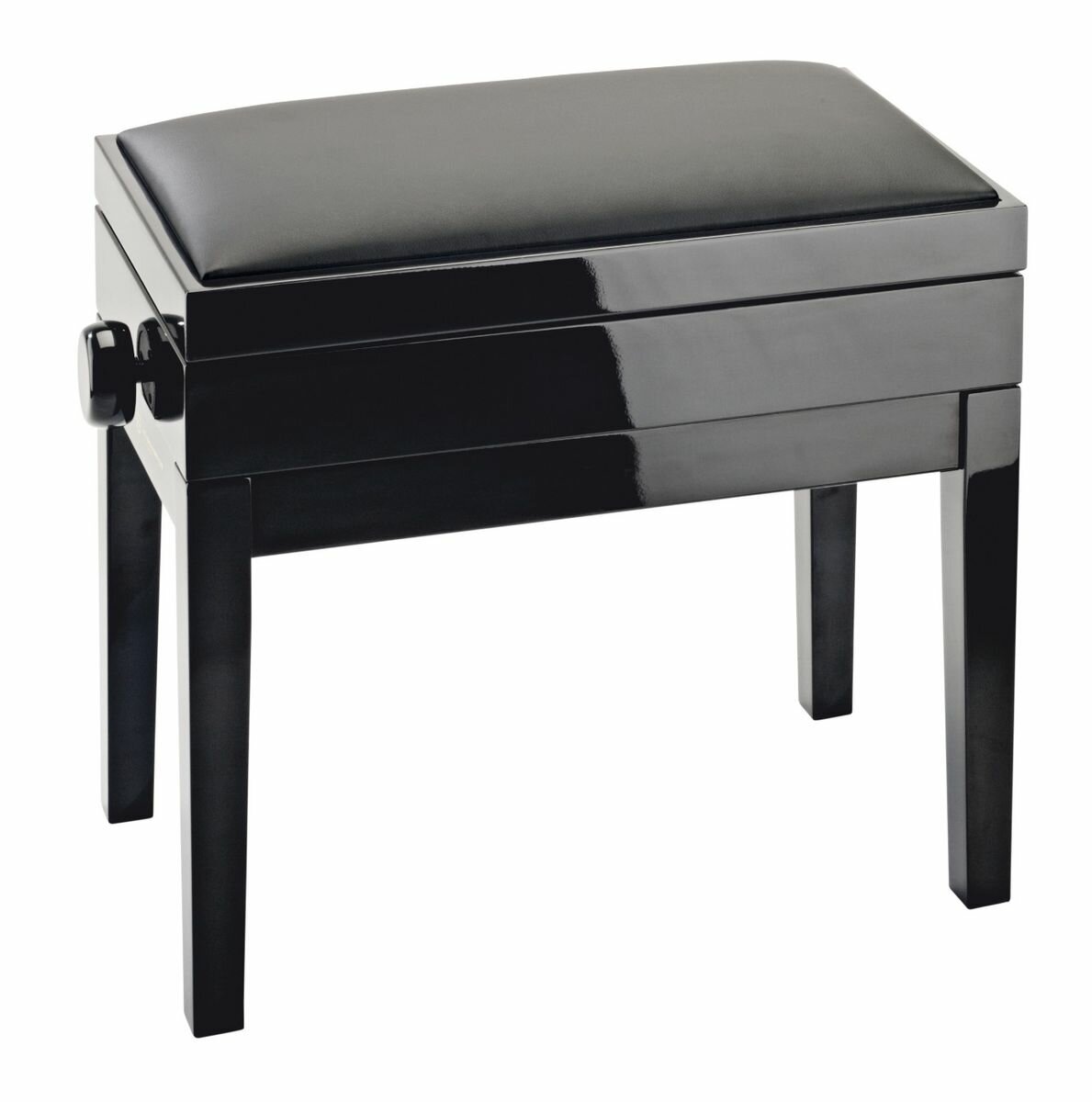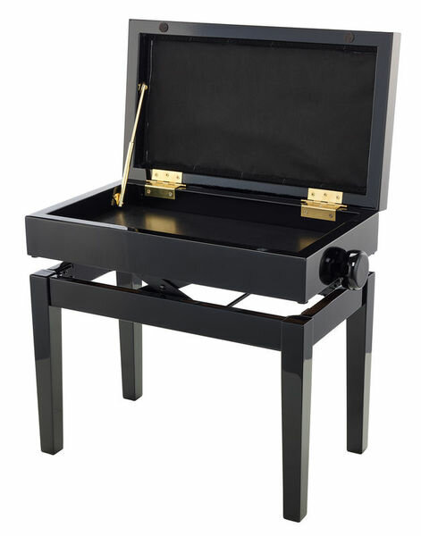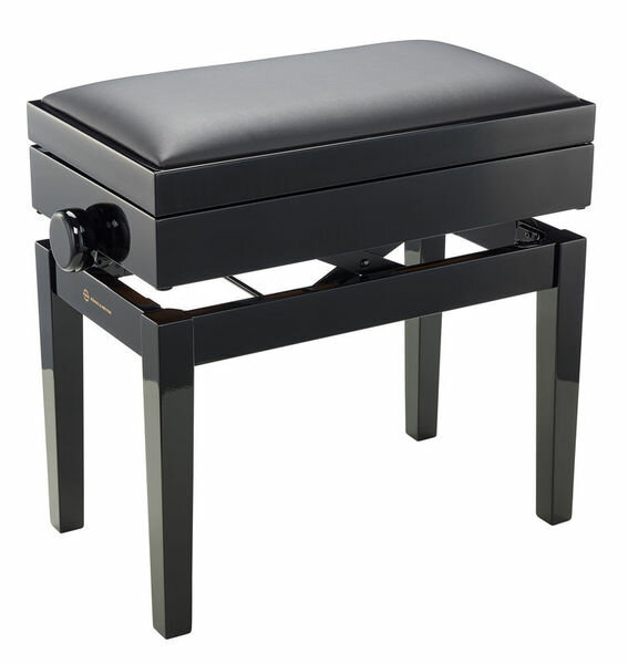 Банкетка K&M – это невероятно изысканный аксессуар, выполненный с особым вниманием к каждой детали. Компания K&M уже много лет производит самые лучшие аксессуары для музыкантов. Данная банкетка сконструирована из крепкого лакированного дерева, мягкое сиденье обтянуто черной искусственной кожей. Сбоку находится удобная ручка, которая позволяет регулировать высоту сиденья от 46 до 55 сантиметров. Размер сиденья составляет 55 на 32 см.