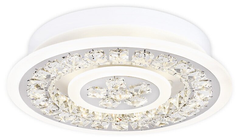 Светильник Ambrella light FA153 серии ICE. Подчеркнет стиль помещения. Высота 9 cm. Диаметр 40 cm Параметры пылевлагозащиты IP — 20. Плафон металлический белого цвета, а материал/цвет арматуры металл/белый. Имеются встроенные светодиодные лампы, рассчитанные на весь срок службы светильника. Идеально подходит для гостиной, для спальни, для прихожей, для кухни. Страна происхождения бренда — РОССИЯ. Вес с упаковкой 3 kg
