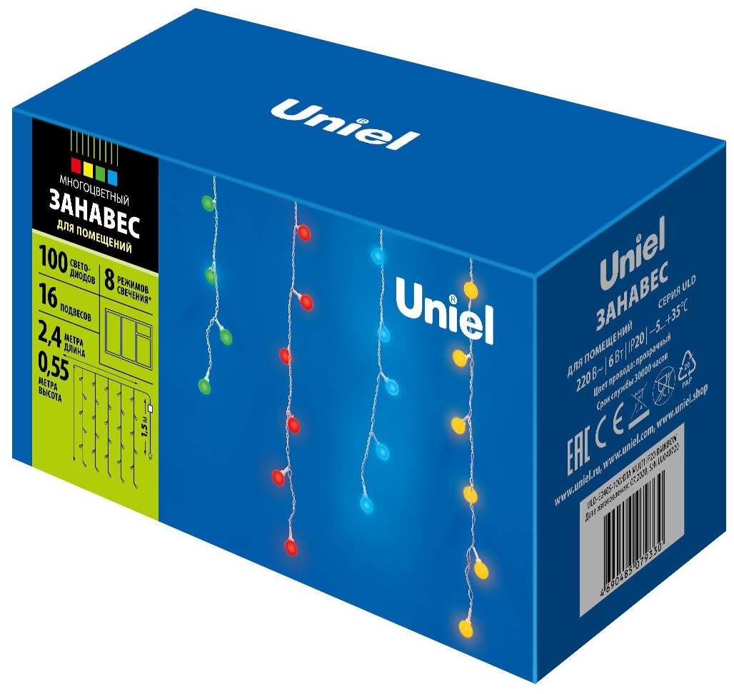 Гирлянда светодиодная - продукт известной компании Uniel (Китай). Имеет максимальную мощность 6 Вт. Отлично подойдет для таких мест, как гостиная, кафе, спальня, офис, магазин.