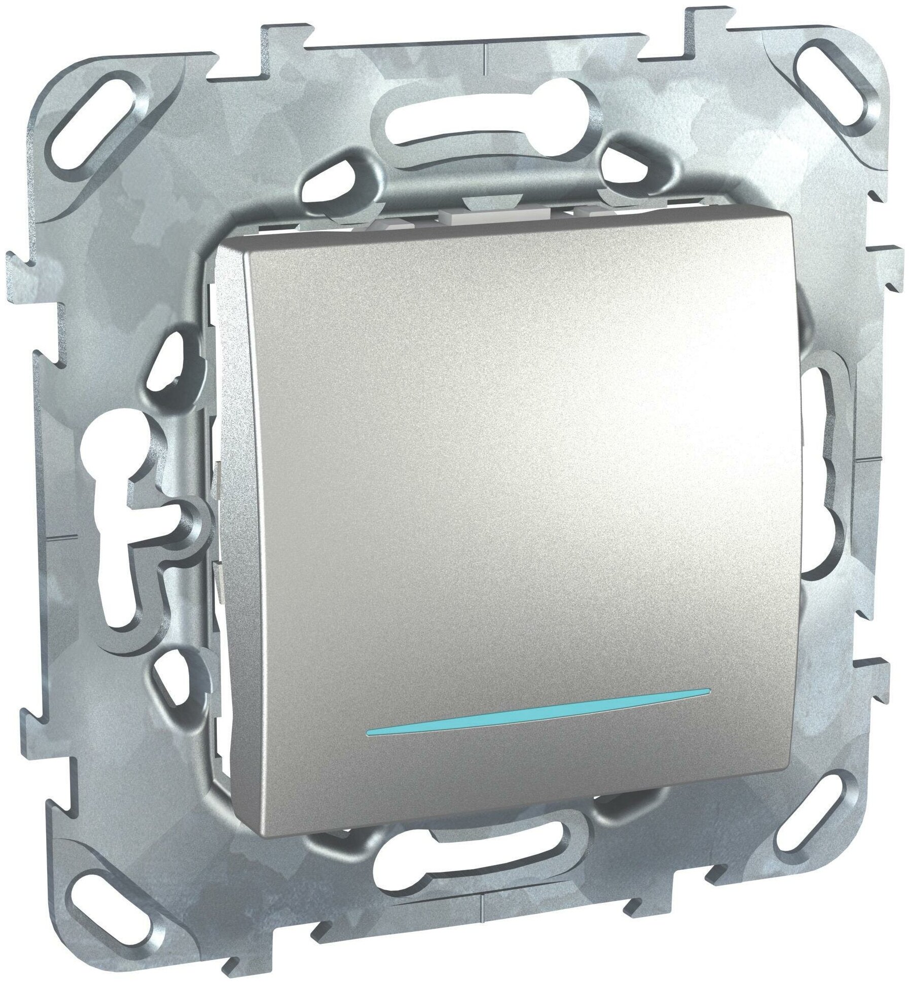 Переключатель одноклавишный с синей подсветкой Schneider Electric Unica Top MGU5.203.30NZD (10 А, под рамку, скрытая установка, алюминий)