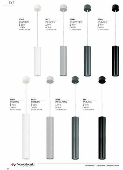 Подвесной светильник Eye 6840 - продукт известной компании Nowodvorski (Польша). Имеет максимальную мощность 35 Вт, освещает площадь до 3 кв. м. Отлично подойдет для таких мест, как кухня, над кухонным островом, офис. Впишется в интерьеры следующих стилей: современный.