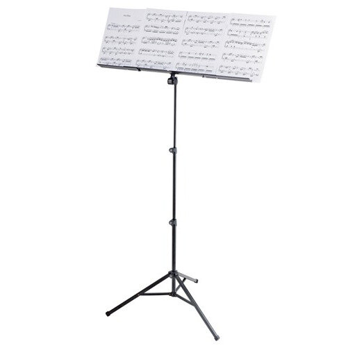 K&M 10062-015-55 - пюпитр «Robby Plus» из линейки Topline от компании König & Meyer, известного производителя аксессуаров для музыкальных инструментов и оборудования из Германии. Особенность этой модели – возможность легко и быстро увеличить ширину столика для нот, раздвигая его в обе стороны. Таким образом конструкция позволяет разместить до четырех листов формата А4 рядом. Пюпитр выполнен из прочной стали. Размер столика для нот – 485 мм х 240 мм х 42 мм, он раздвигается до 775 мм. Стойка имеет практичную складную конструкцию из трёх частей, которые вставляются друг в друга. Это позволяет регулировать высоту от 58 см до 122 см. Пюпитр надежно устанавливается на трех складных ножках со специальными противоскользящими резиновыми наконечниками. Модель представлена в черном цвете. Пюпитр удобен для выездных мероприятий, он легко и быстро складывается в компактную конструкцию для транспортировки (размер в сложенном состоянии – 50 см), а его вес - всего 1,75 кг.
