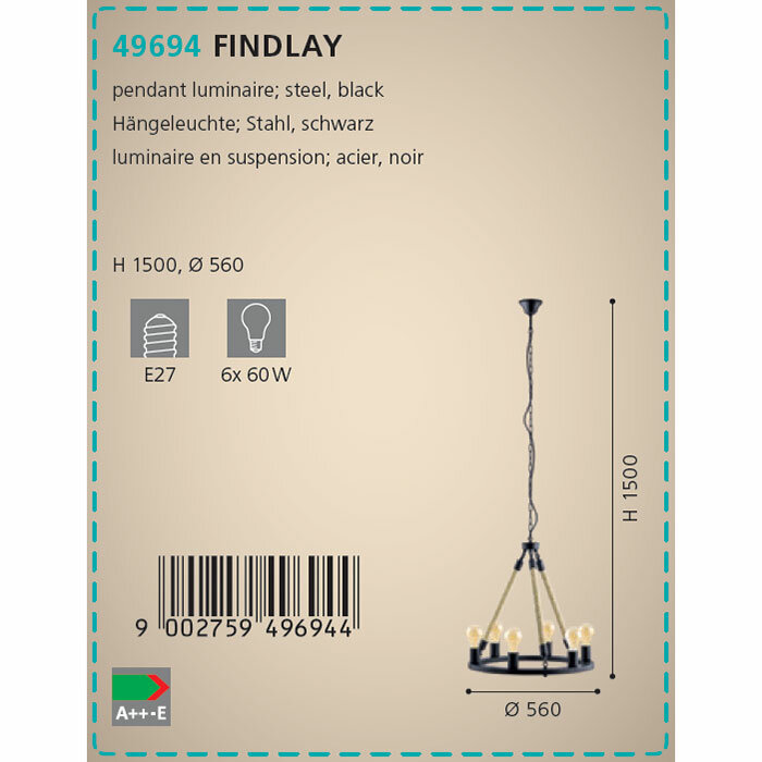 Подвесная люстра FINDLAY 49694 - продукт известной компании Eglo (Австрия). Имеет максимальную мощность 360 Вт, освещает площадь до 18 кв. м. Отлично подойдет для таких мест, как гостиная, спальня, кабинет, кухня, дача. Впишется в интерьеры следующих стилей: лофт, индустриальный.