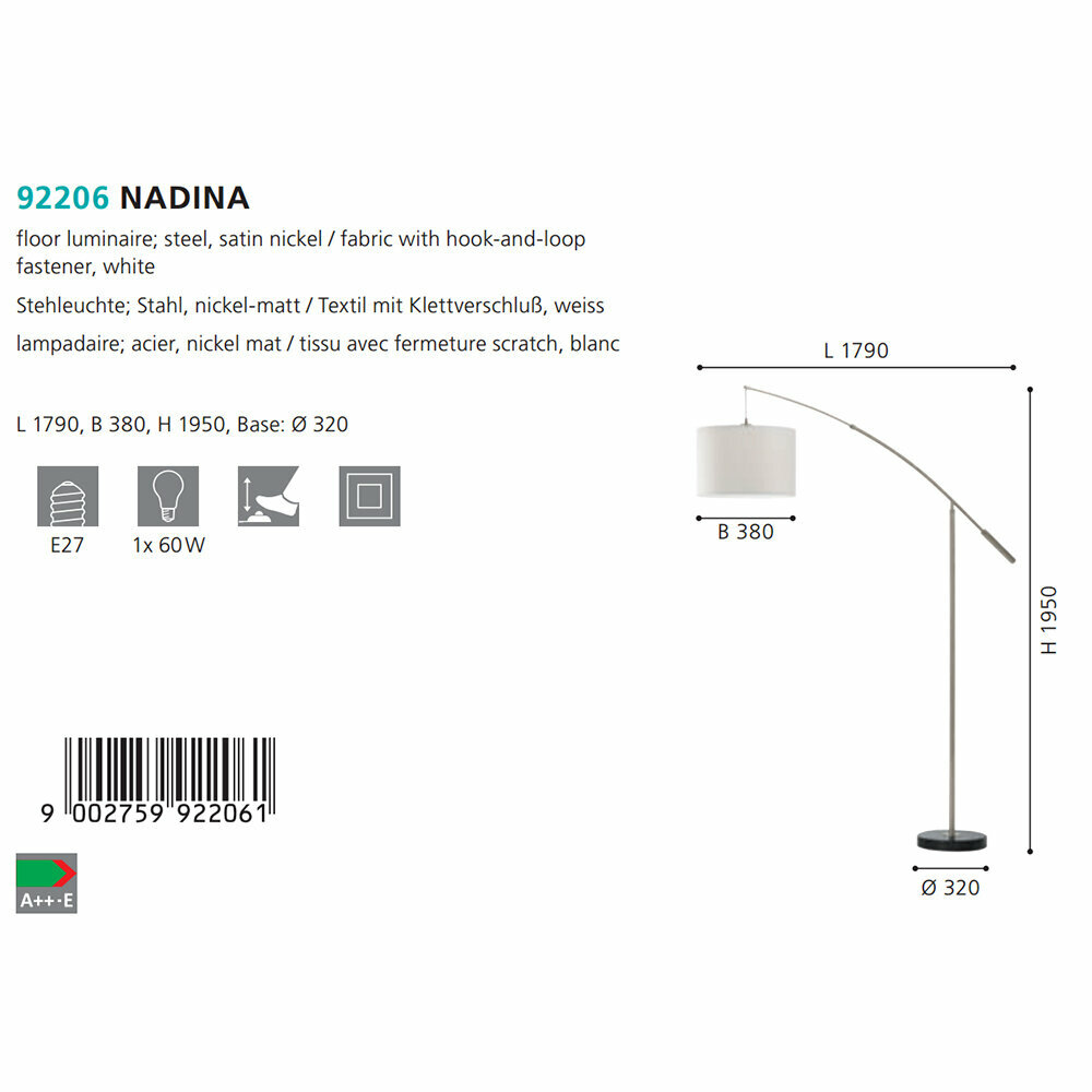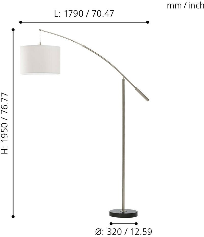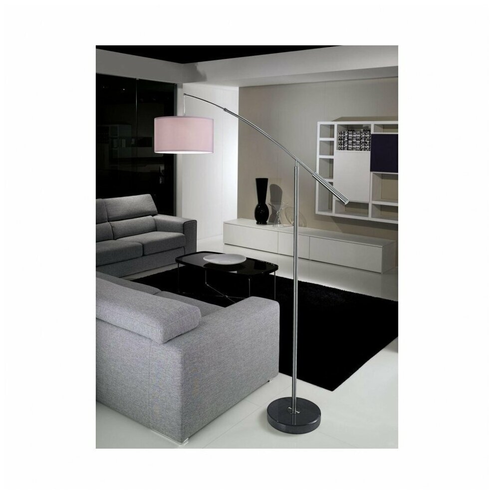 Изогнутый торшер - продукт известной компании Eglo (Австрия). Имеет максимальную мощность 60 Вт, освещает площадь до 3 кв. м. Отлично подойдет для таких мест, как спальня, гостиная, кабинет. Впишется в интерьеры следующих стилей: модерн.