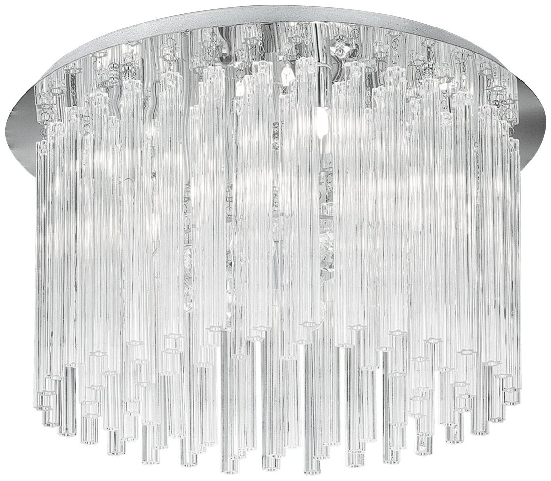 Светильник потолочный Ideal Lux Elegant PL8 8x28Вт G9 300Лм 2700К D50 Хром Прозрачный 019451. Арматура из металла с хромовым покрытием. Прозрачные стекла в виде трубочек пятиугольной формы в разрезе. Центральные сферы изхрусталя с фацетом. Диаметр светильника 50см, высота 29см. Лампы в комплекте.