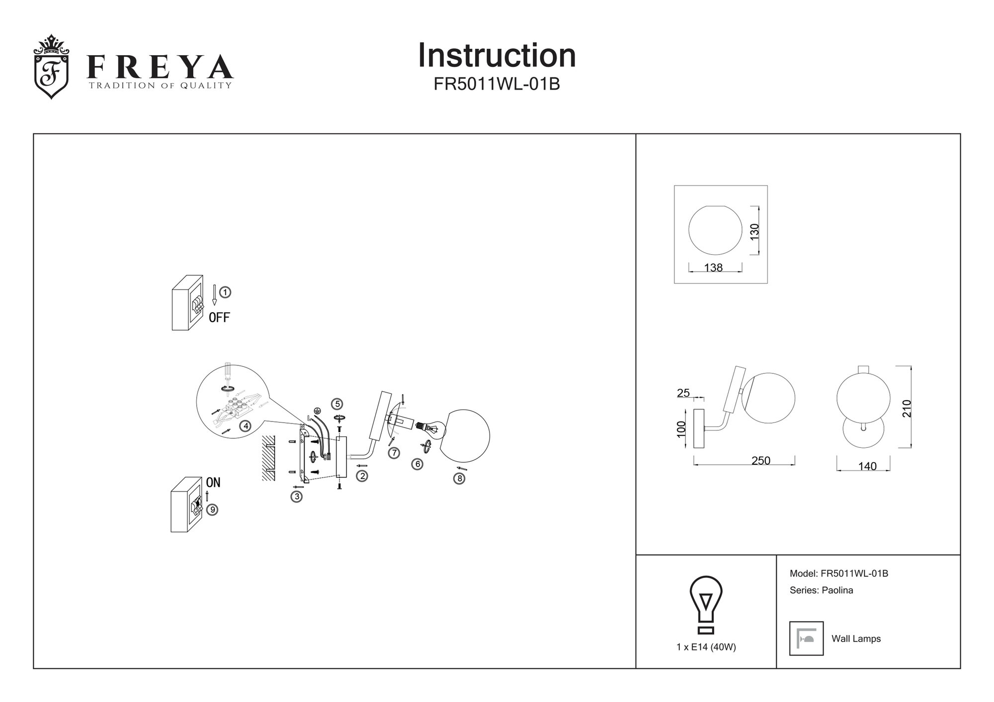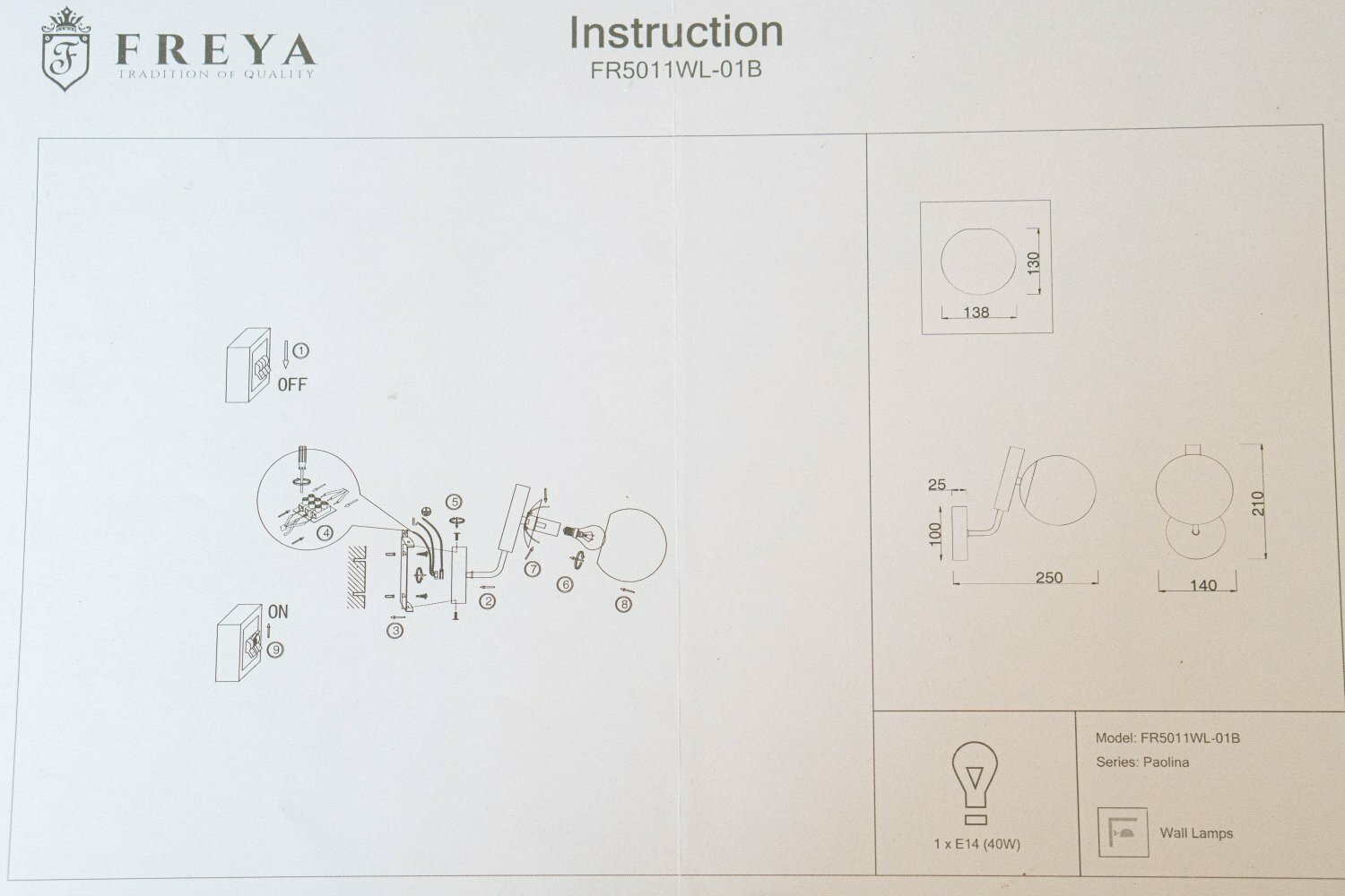 Бра Paolina FR5011WL-01B - продукт известной компании Freya (Германия). Имеет максимальную мощность 40 Вт, освещает площадь до 2 кв. м. Отлично подойдет для таких мест, как гостиная, прихожая и коридор, кафе, спальня, кабинет. Впишется в интерьеры следующих стилей: современный.