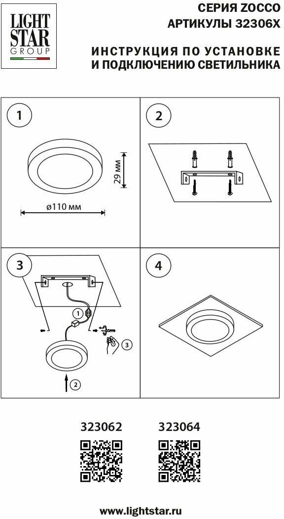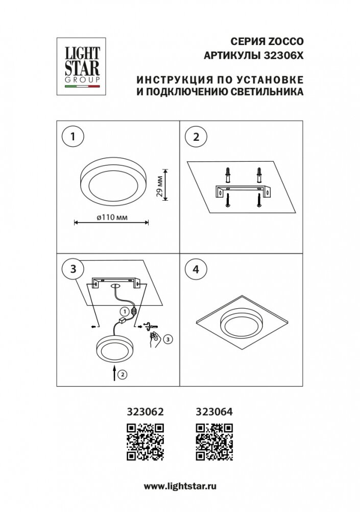 Настенно-потолочный светильник Zocco 323064 - продукт известной компании Lightstar (Италия). Имеет максимальную мощность 6 Вт, освещает площадь до 1.2 кв. м. Отлично подойдет для таких мест, как кафе, ванная, офис, магазин. Впишется в интерьеры следующих стилей: классический.