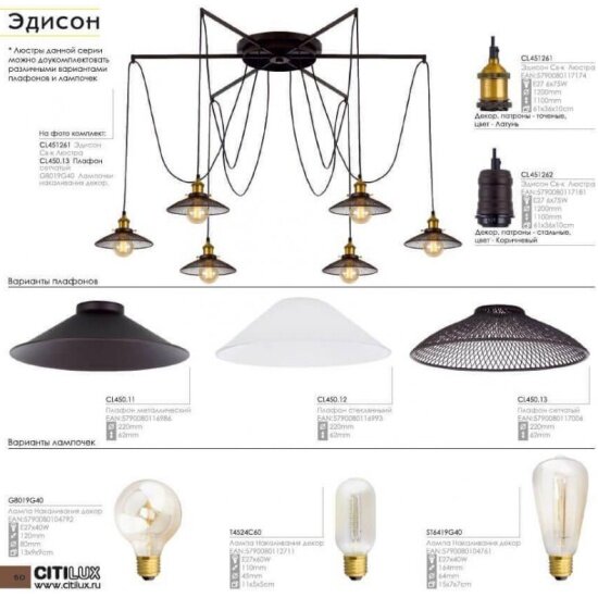 Подвесной светильник паук Эдисон CL451262 - продукт известной компании Citilux (Италия). Имеет максимальную мощность 450 Вт. Отлично подойдет для таких мест, как гостиная, спальня, кабинет, офис, кафе. Впишется в интерьеры следующих стилей: лофт.