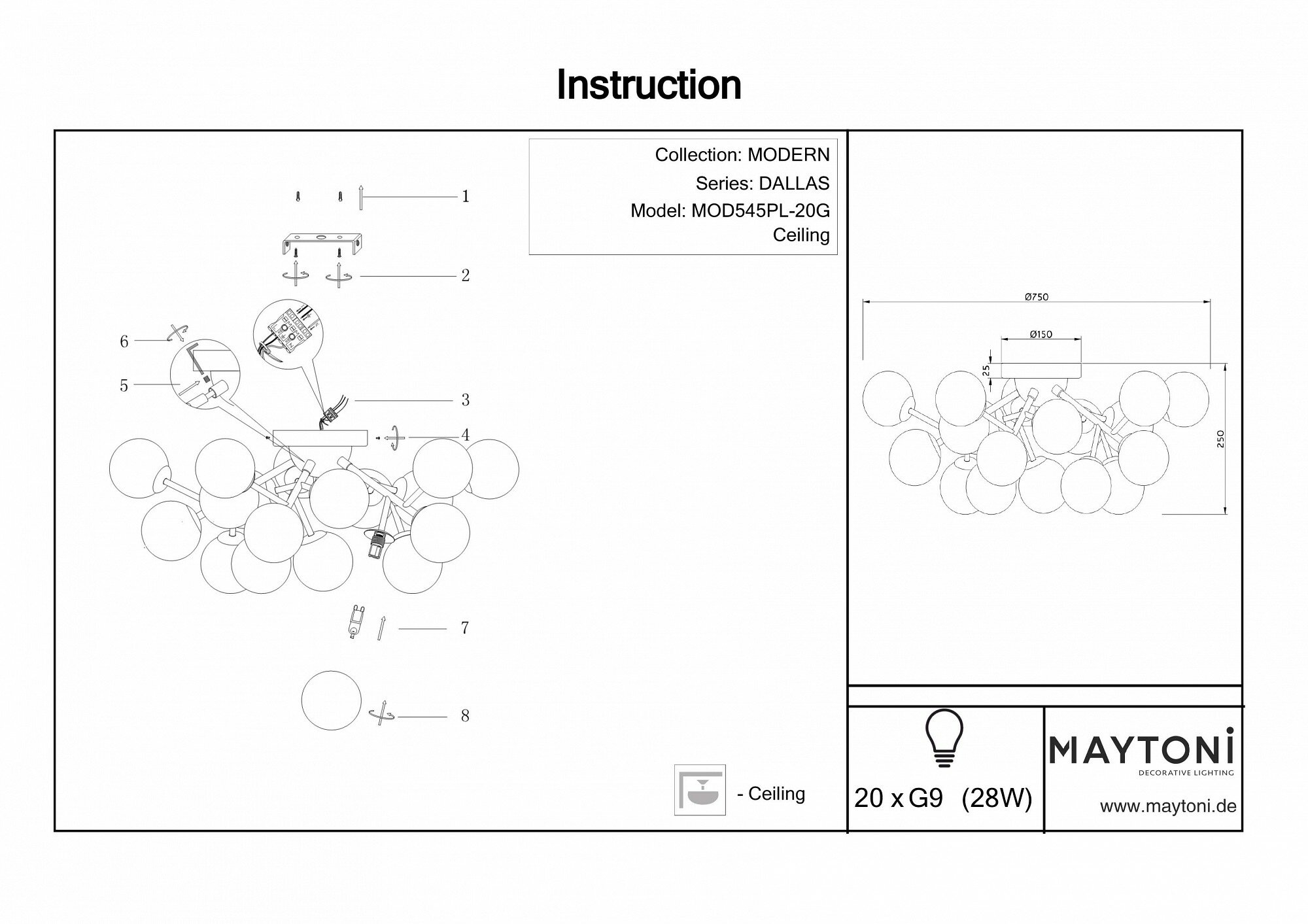 Потолочная люстра Dallas MOD545PL-20CH - продукт известной компании Maytoni (Германия). Имеет максимальную мощность 560 Вт, освещает площадь до 40 кв. м. Отлично подойдет для таких мест, как гостиная, кухня, спальня, кафе, офис, кабинет. Впишется в интерьеры следующих стилей: модерн, лофт.