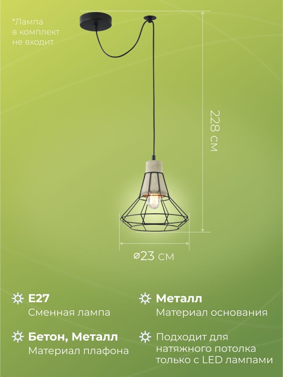 | Плафоны | из металлической сетки, патрон выполнен с использованием бетона |