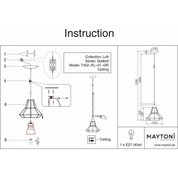 Подвесной светильник Maytoni Gosford T452-PL-01-GR