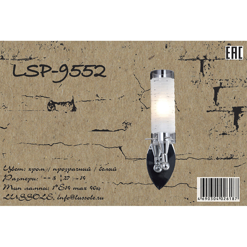 Бра LSP-9552 - продукт известной компании Lussole (Италия). Имеет максимальную мощность 40 Вт, освещает площадь до 2 кв. м. Отлично подойдет для таких мест, как прихожая и коридор, спальня, гостиная. Впишется в интерьеры следующих стилей: модерн.