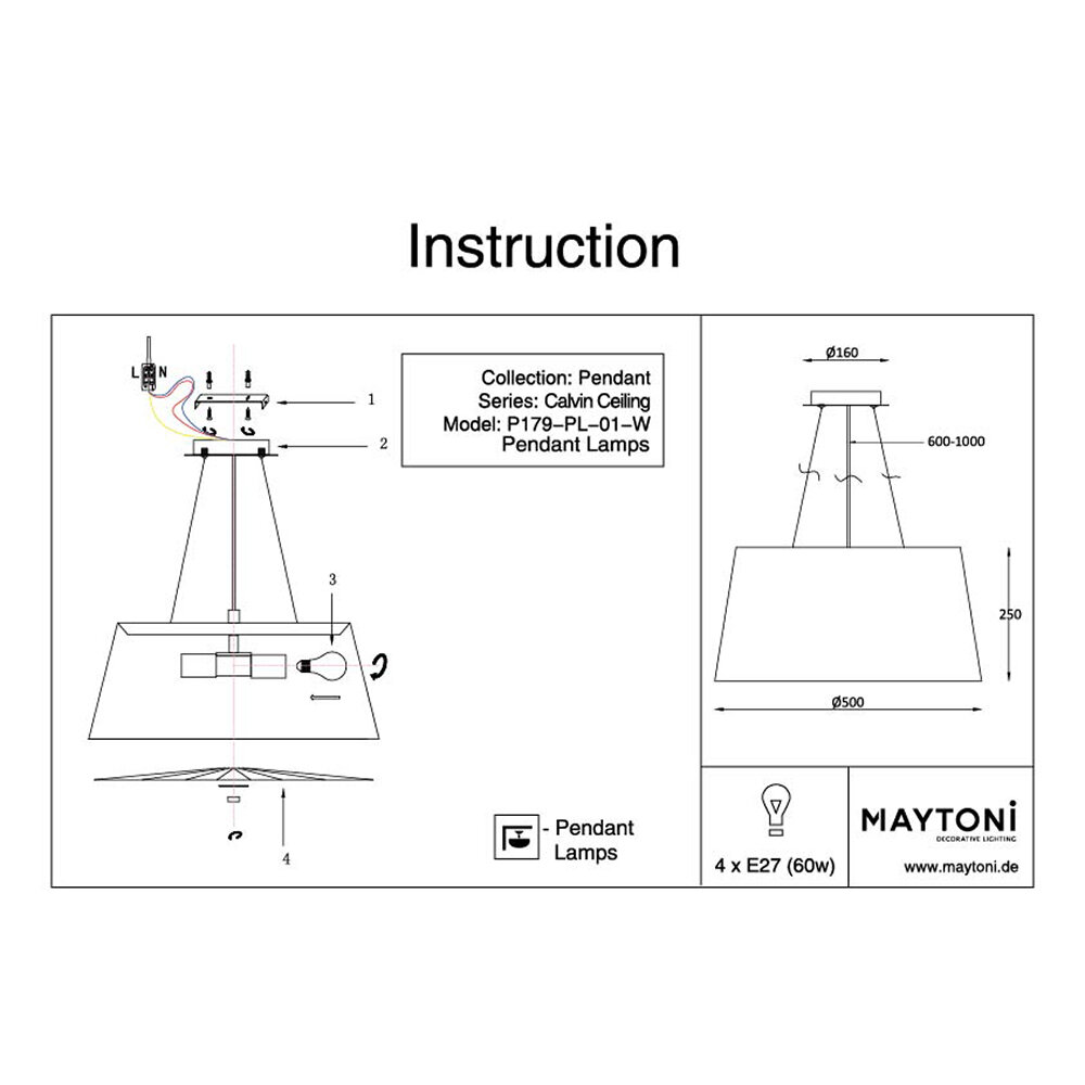 Подвесной светильник Calvin Ceiling E27х4 Maytoni Calvin Ceiling P179-PL-01-W