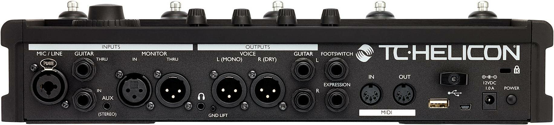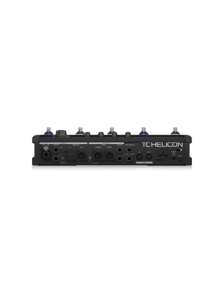 представляет собой один из самых современных вокальных процессоров последнего поколения в котором есть функция многоголосной гармонии. Для использования с гитарой напольный процессор имеет комбинированные входы для подключения к разным усилителям и сквозной канал. Для создания оригинального перформанса есть мощный, 3-фразовый лупер для записи и воспроизведения своих композиций. Пользователям доступно 250 фабричных пресетов и внутренняя память для сохранения 500 пресетов, 10 стальных кнопок-футсвитчей, управление треками и FX-автоматизацией через кнопки-контроллеры и многое другое. Процессор имеет компактные размеры - 76 мм. х 350 мм. х 216 мм. и вес - 2,3 кг. Он отличителен простотой настроек и несложным управлением. Вокально-гитарный процессор эффектов TC HELICON представляет богатый набор функций и возможностей профессионального класса.