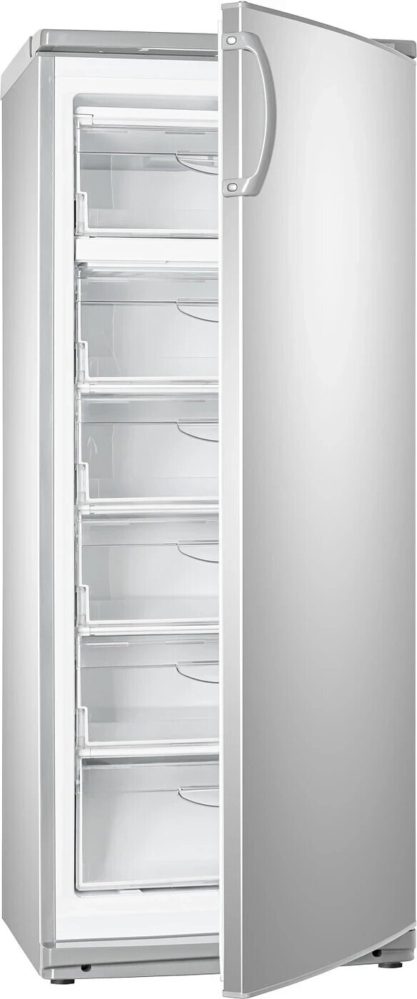 Вместительный и практичный морозильный шкаф Атлант . Режим быстрого замораживания обеспечит сохранение полезных свойств продуктов. Стандартные размеры позволяют удобно разместить морозильник на кухне, даче, а дверь можно перевесить на более удобную для вас сторону.