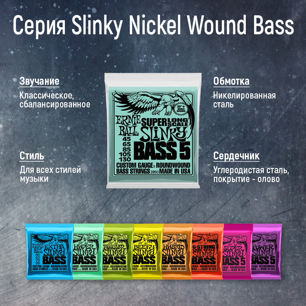 Ernie Ball 2824 Nickel Wound Bass Super Slinky 5 - это комплект струн для 5-струнной бас-гитары. Толщина струн имеет следующие характеристики: .040, .060, .075, .95, .125. Комплект струн от компании Ernie Ball (США) подарит бас-гитаристам исключительно богатое звучание и глубокий, насыщенный тон. Струны прекрасно справятся с самыми разными музыкальными стилями, начиная от популярной музыки, заканчивая прогрессивным роком. Струны хорошо подходят для "слепа" и активной, динамичной игры.
