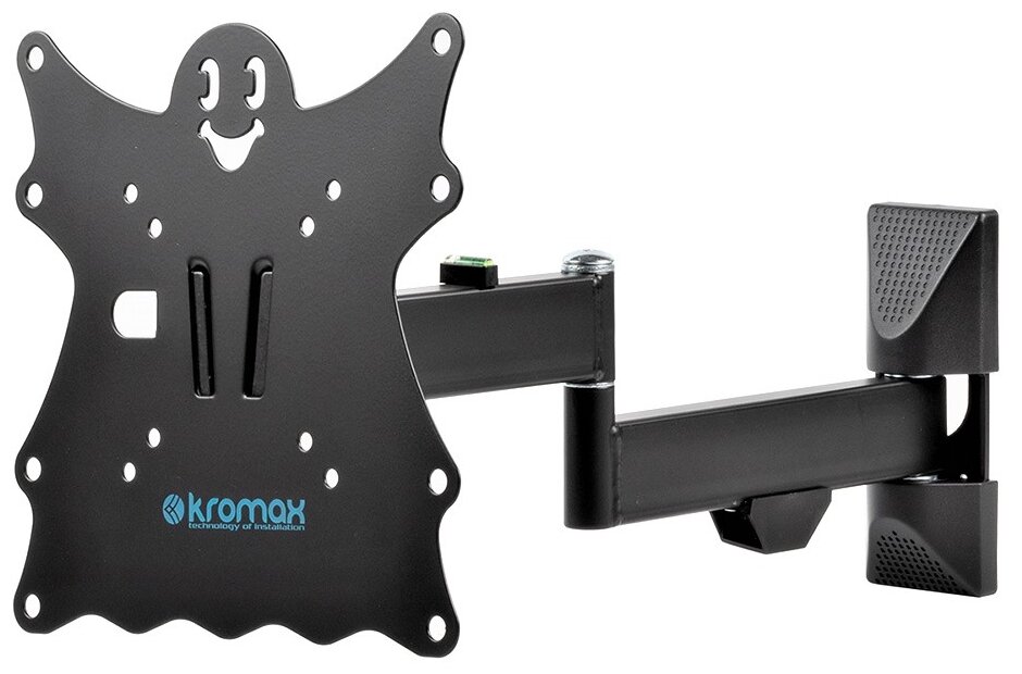 Кронштейн KROMAX подойдет обладателям телевизоров с диагональю от 15 до 40 дюймов. Модель можно использовать для крепления TV в комнате или кухне. Компактные размеры впишутся в любое пространство. Важные опции кронштейна Устройство очень крепкое и надежное благодаря стальной конструкции. С помощью кронштейна удерживается телевизор весом до 30 кг. Настенный держатель не является статичным, он позволит найти оптимальное положение телевизионной техники, повернув или наклонив ее за счет механизма. В модификации заложена возможность поворота устройства в обе стороны. Выбор направления поможет избежать бликов от солнца или других источников освещения. Для удобства пользователь сможет наклонить телевизор вперед или отклонить его назад. Кронштейн для телевизора KROMAX – практичный и универсальный вариант. Благодаря совместимости с четырьмя разными стандартами VESA, его несложно подобрать к определенной модели телевизора. Наклонно-поворотный кронштейн удобен для размещения в углу комнаты, на любой высоте. Монтируется держатель быстро и легко. Все необходимые для сборки крепежи уже есть в комплекте. Цена изделия доступная, не станет помехой в приобретении оригинальной модели для установки телевизора на определенной высоте.Совместимость Кронштейн подходит для большинства телевизоров популярных брендов, среди которых Samsung, LG, Sony, KIVI, Tcl, Xiaomi Mi, SUPRA, Panasonic, Hyundai, Erisson, Asano, Horizont, JVC, Thomson, HARTENS, Sharp, Toshiba, Skyworth, BBK, AVEL, Витязь, Веко, BQ, DEXP, SkyLine, Pioneer, Rolsen, Harper, Hisense, Hitachi, Polarline, Prestigio, Telefunken и других.