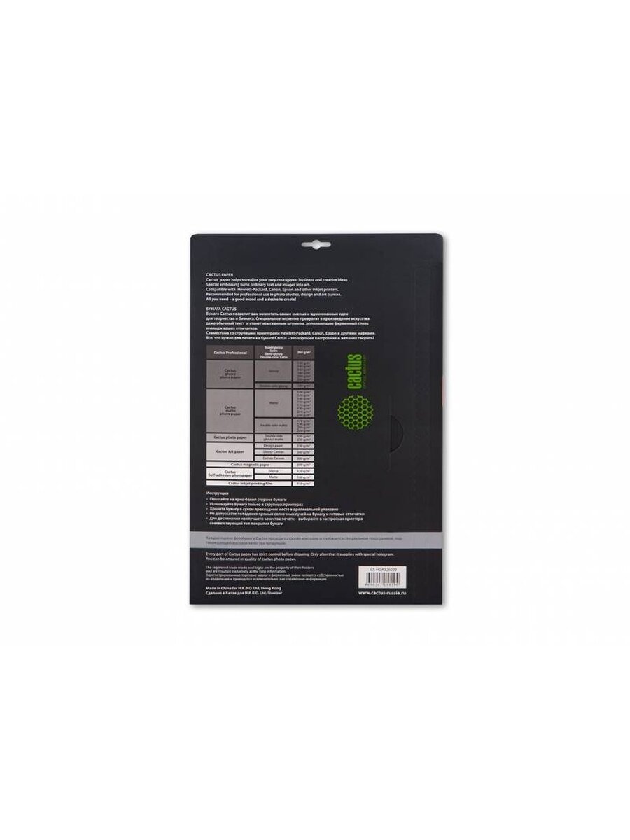 Превратите ваши фотографии в произведения искусства и сохраните их в первозданном виде на многие годы. Фотобумага серии Cactus Professional - это бумага класса премиум. Незаменима для печати цифровых фотографий с максимальным разрешением. Высококлассное покрытие и ультрасовременная полимерная основа фотобумаги Cactus Professional гарантирует максимально точную цветопередачу. Совместима со струйными принтерами Hewlett Packard, Canon, Epson и другими марками. Рекомендуется для профессионального использования в фотостудиях, дизайнерских и художественных бюро.