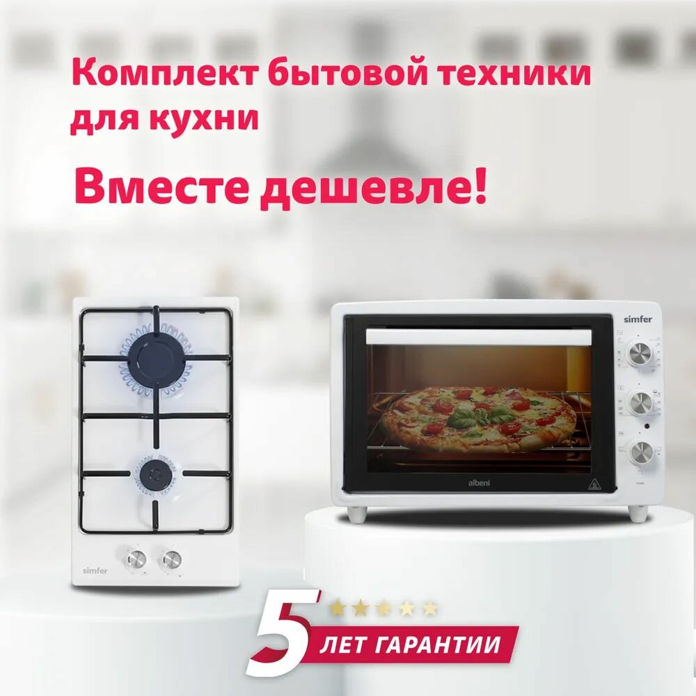 Как и большая часть техники Simfer, комплектуется нужным и полезным оборудованием. В его состав входят два противня и специальная хромированная решетка. Удобство приготовления и разогрева пищи обеспечивается простой и интуитивно понятной панелью управления, на которой размещаются: