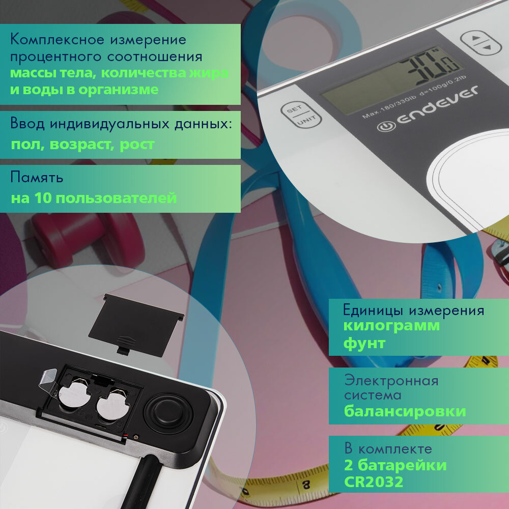 ENDEVER может пользоваться вся семья - весы способны запомнить результаты измерений для 10 человек.