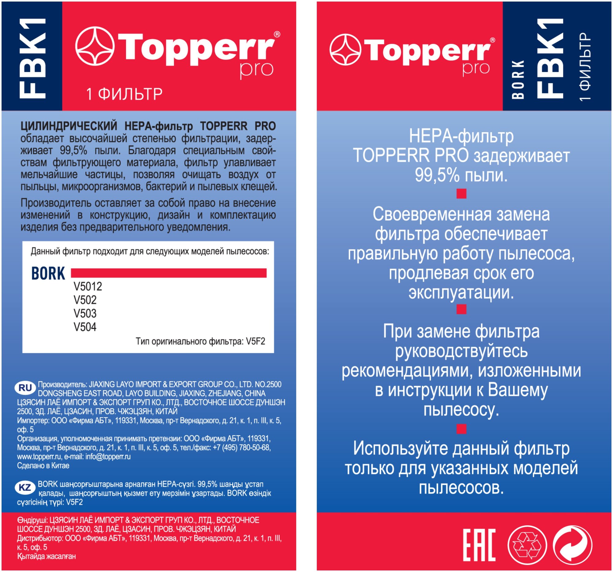 HEPA фильтр Topperr – идеальный аналог на замену оригинальному фильтру V5F2 для пылесосов моделей V502, V503, V504, V5012 DUO.
