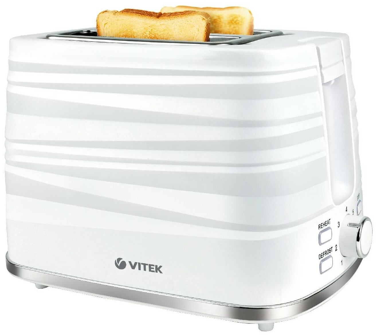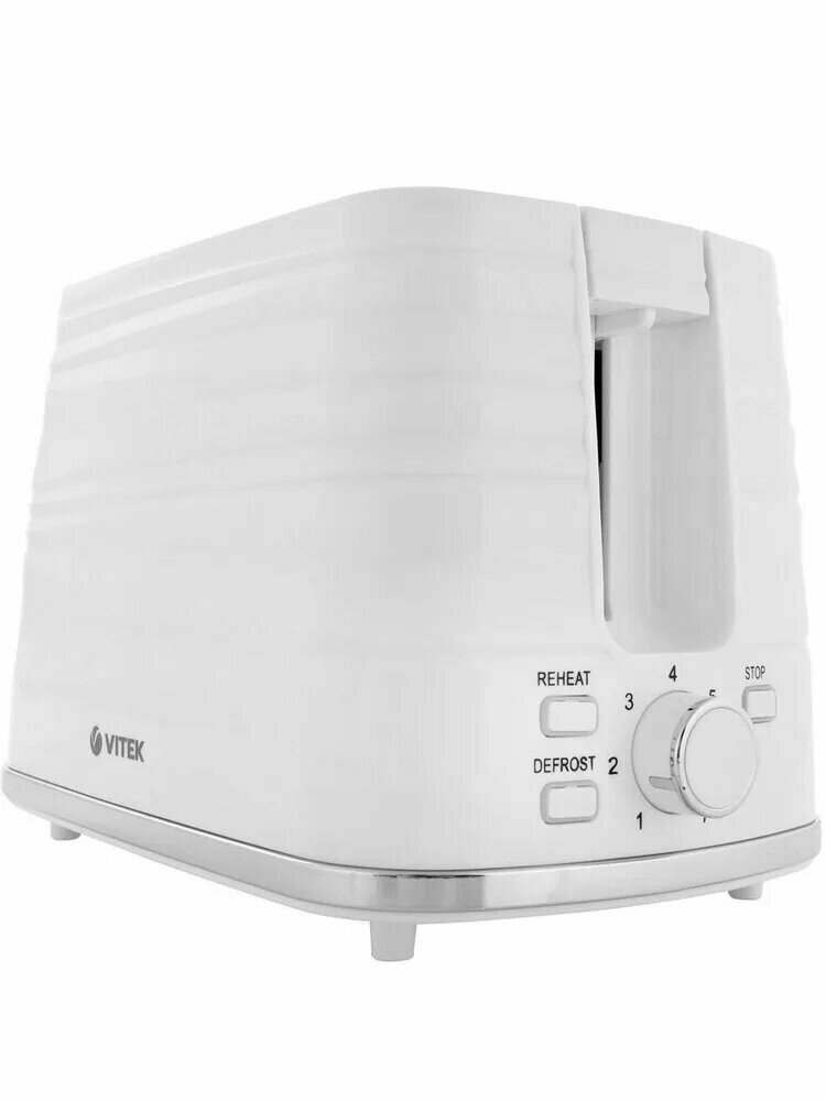 Подрумянить ломтики хлеба до необходимой вам степени или, при необходимости, разморозить его, даст возможность тостер VITEK . Пользоваться им легко и удобно, благодаря простому и понятному механическому управлению, которое позволяет мгновенно остановить процесс приготовления. Следует отметить и стильный дизайн тостера, подходящий к интерьеру практически любой кухни.