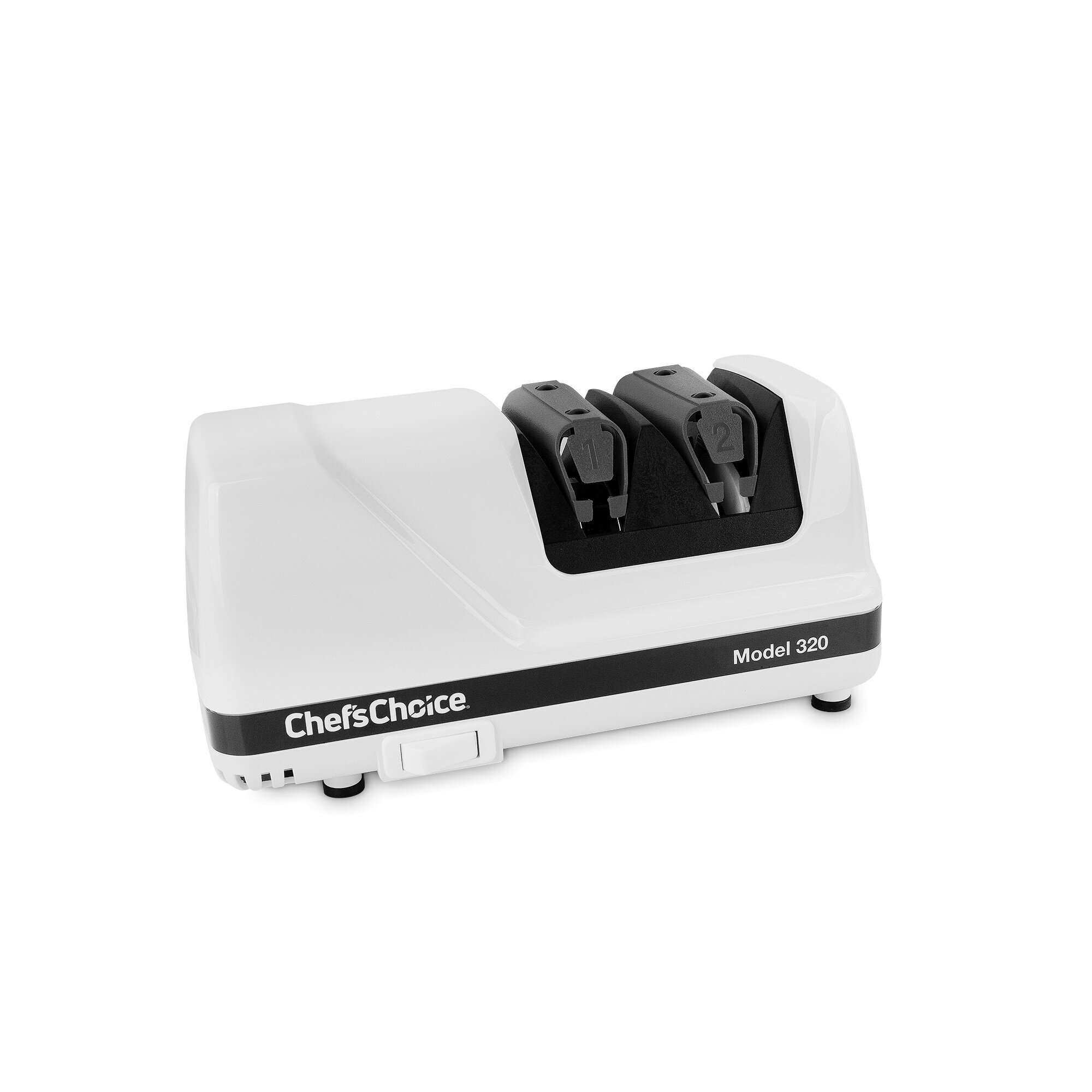 Электрическая точилка Chef`s Choice 320 предназначена для заточки современных европейских и американских кухонных ножей, складных карманных ножей, туристических и охотничьих ножей с фиксированным клинком, а также ножей с серрейторной режущей кромкой. Кроме того, с помощью точилки СС320 можно восстанавливать поврежденные режущие кромки ножей, убирая мелкие сколы и замины.Электроточилка Chef`s Choice 320 оснащена двумя слотами для заточки ножей:слот № 1 — для заточки под углом в 20 градусовслот № 2 — для полировки лезвийС помощью точилки СС320 затачивают ножи с симметричной двухсторонней заточкой. Для этого попеременно используют правый и левый паз рабочего слота.Электроточилка Chef`s Choice 320, благодаря стопроцентным алмазным абразивам, затачивает ножи качественно и очень быстро: для первичной заточки ножа требуется в среднем от одной до полутора минут. Для правки ранее заточенного ножа — всего около 10 секунд.Точилка Chef`s Choice 320 — очень надежное и долговечное заточное устройство для ножей, рассчитанное на продолжительный период работы. Алмазные абразивные диски изнашиваются очень медленно, даже при интенсивном использовании точилки их ресурс исчисляется годами работы. Электроточилка Chef`s Choice 320 комплексно решает проблему заточки ножей с европейским/американским типом заточки (под 20 градусов).