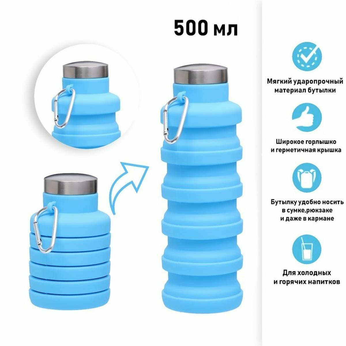 - Bradex Бутылка для воды силиконовая складная с крышкой, 500 мл
