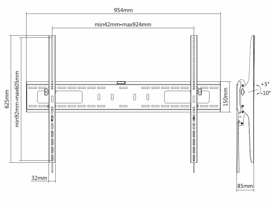Профессиональный ультраплоский фиксированный кронштейн для больших или тяжелых LED/LCD телевизоров с максимальным весом до 100 кг. Кронштейн имеет регулировки: наклон -10°/ +5°. Особенностью модели является наличие механизма автоматической защелкивания кр.
