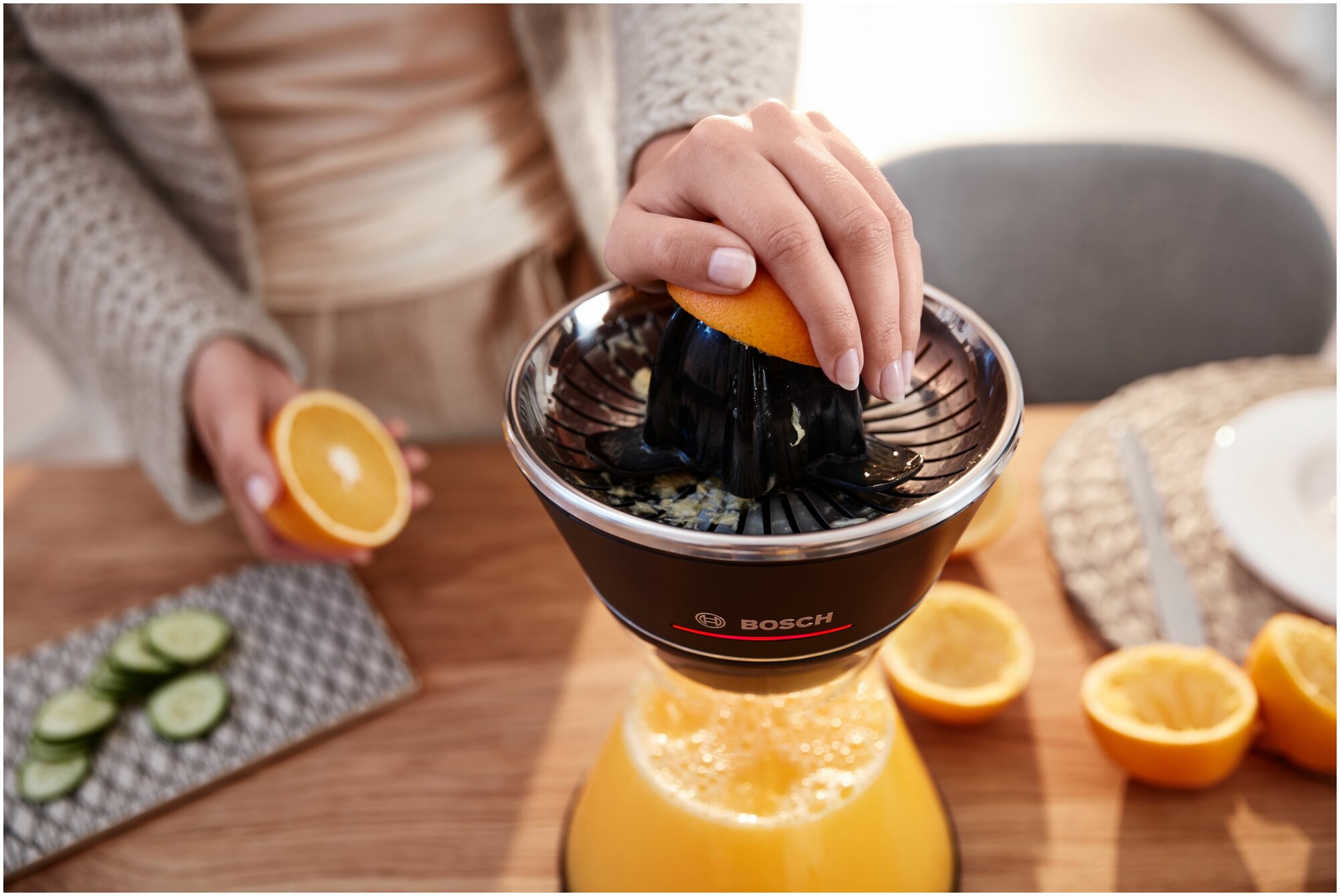 Соковыжималка Bosch с премиальным дизайном объединяет стиль и функциональность. Удобная 2-в-1: сок отжимается прямо в стеклянный графин, готовый к подаче. Автоматическое включение при нажатии на конус упрощает использование. Безопасный пластик без BPA гарантирует здоровье. Легко чистится — съемные детали можно мыть в посудомойке. Награждённый дизайн станет украшением любой кухни.