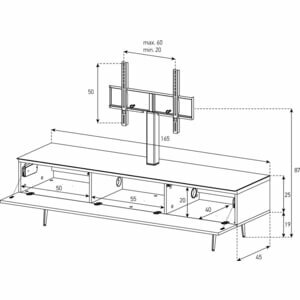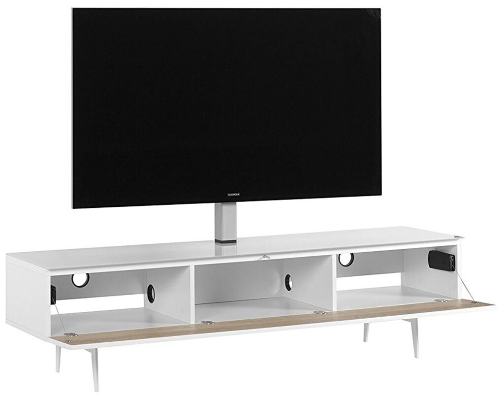 Закрытая стойка под телевизор премиум класса для больших телевизоров. Дверь открывается нажатием. Эффективный кабель-канал для маскировки всех кабелей и шнуров. Скрытые колесики, позволяющие плавно двигать тумбу с техникой, в случае необходимости. Например, протереть пыль за тумбой. В комплекте стойки инфракрасный ретранслятор сигнала (для пультов), то есть оборудование (ДВД плеер, спутниковый ресивер и пр.) внутри стойки будет работать с пульта при закрытой дверке. ТВ стойка оснащена универсальным поворотным кронштейном с возможностью регулировки телевизора по высоте.