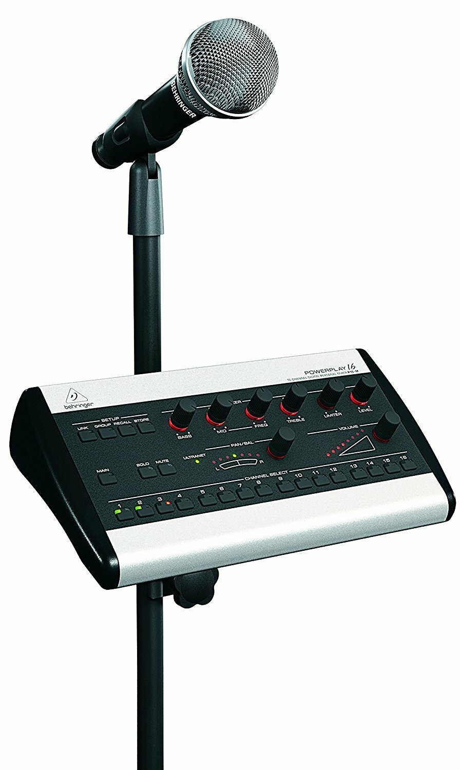 Представляем вам дополнительный аксессуар из системы Powerplay – монтажная стойка P16- MB под микшерный пульт. Базовая установка состоит из одного аудио-интерфейса P16-I, который подключается к основному микшерному пульту, и до шести персональных микшеров P16-M. Вместе эти приборы объединяются в довольно большую систему, достаточную для оснащения типичной студии звукозаписи, небольшого или среднего ансамбля или церковного хора. Вам так же понадобятся несколько стандартных аудио-кабелей и кабели CAT5. Отдельно приобретается монтажный кронштейн P16-MB, который позволяет установить цифровой персональный микшер P16-M на любой стандартный микрофонный, музыкальный или барабанный штатив. Систему также можно легко расширить при помощи устройств P16-D – цифровых распределителей сигналов по сети ULTRANET. Шесть таких устройств можно подключить в единую сеть для управления сорока восемью персональными мишкерами P16-M.