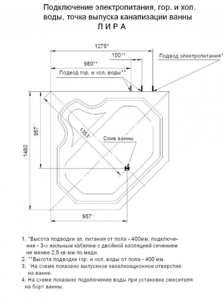 | Диаметр выпуска (отверстия для слива) | 52 |