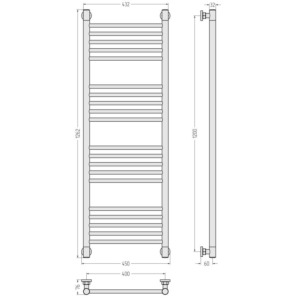 Водяной полотенцесушитель Сунержа Богема прямая 1200х400 Хром (размер: 126х45 см)