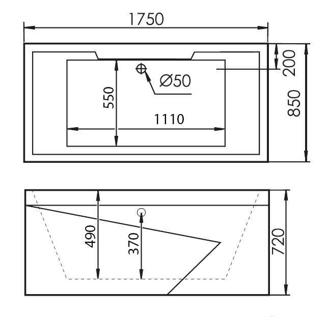 | Диаметр выпуска (отверстия для слива) | 50 |