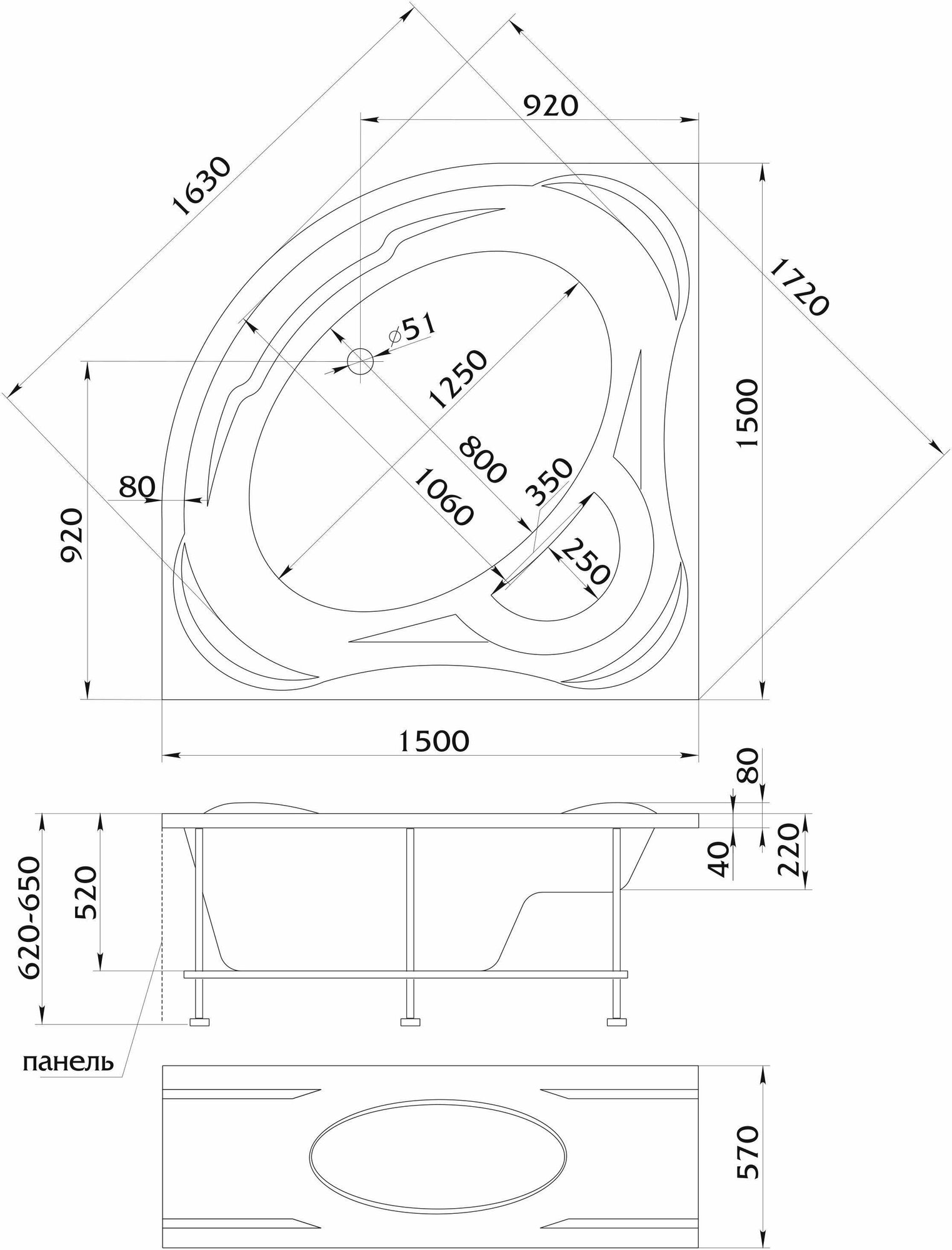| Расположение слива | Со сливом в центре |