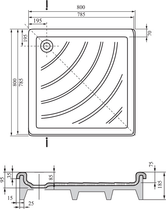 - Душевой поддон самонесущий для облицовки- переднюю панель можно облицевать керамической плиткой