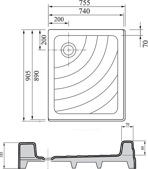 АКРИЛОВЫЙ ДУШЕВОЙ ПОДДОН ПРЯМОУГОЛЬНЫЙ