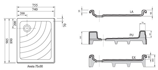 Акриловый поддон для душа Ravak Aneta-75 PU PU белый (размер: 90 x 75)
