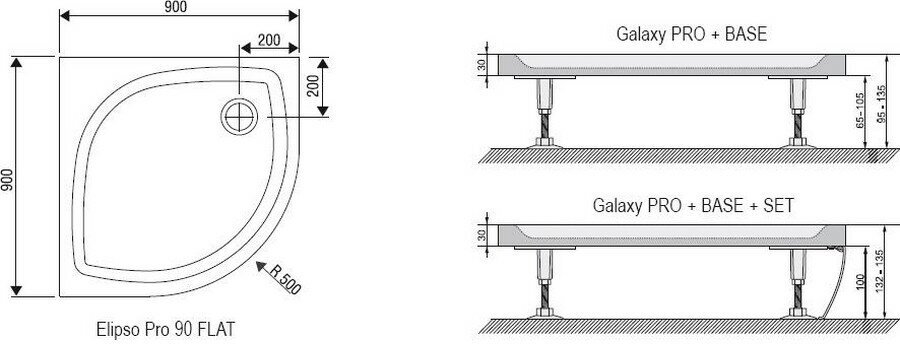 Поддон Ravak Elipso Pro 90 Flat Белый (размер: 90 x 90)