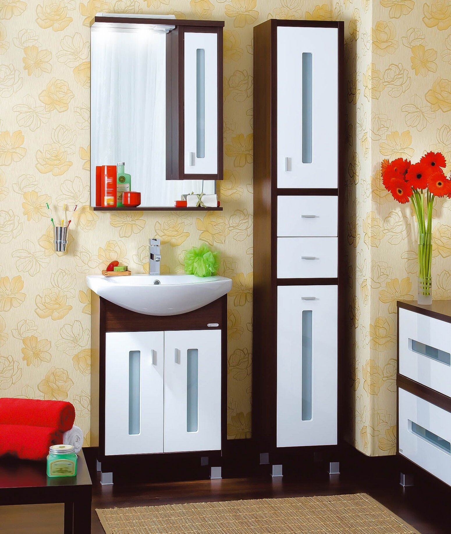 Зеркальный шкаф Бриклаер Бали 62 Корпус венге, фасад белый R