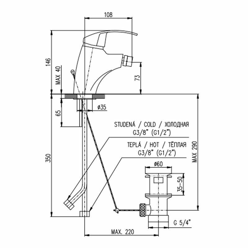 Смеситель Rav Slezak Missisipi MS045.5 для биде, с открыванием стока