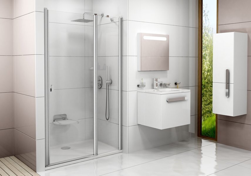 Идеальное решение для создания душевого пространства в нише шириной 100 - 120 см. Для лучшего проветривания двери открываются вовнутрь и наружу, обеспечивая удобный вход и отсутствие неприятных капель воды на полу.