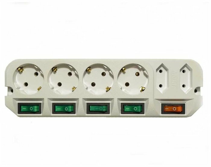 | Особенности | У каждой из четырех евророзеток имеется мощный (16A) индивидуальный выключатель,который обеспечивает удобство обращения с электропитанием и экономит Ваше время. Две узкие розетки имеют общий выключатель. |