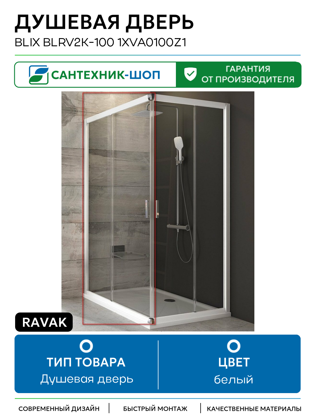 Сервис сравнения цен СкидкаГИД предлагает сравнить цены на товар «Дверь для душевого уголка Ravak Blix BLRV2К-100 белый+транспарент»