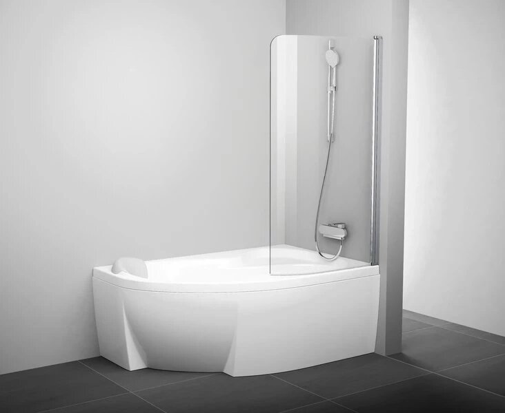 Роскошная стеклянная штора предназначена для ванн Rosa. Поворотный механизм позволяет складывать штору под углом 180° вовнутрь ванны или наружу к стене, что в свою очередь облегчает уход за стеклом и предоставляет широкий вход в ванну.