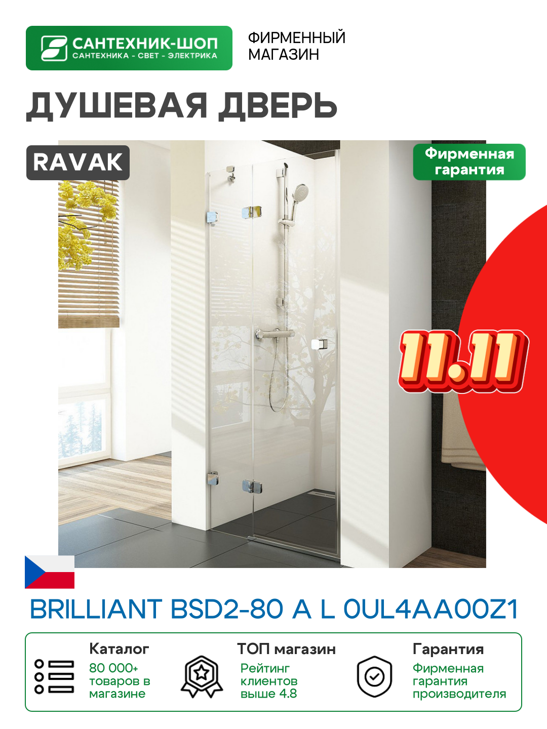 Сервис сравнения цен СкидкаГИД предлагает сравнить цены на товар «Душевая дверь в нишу Ravak Brilliant BSD2-80 A L хром+транспарент»