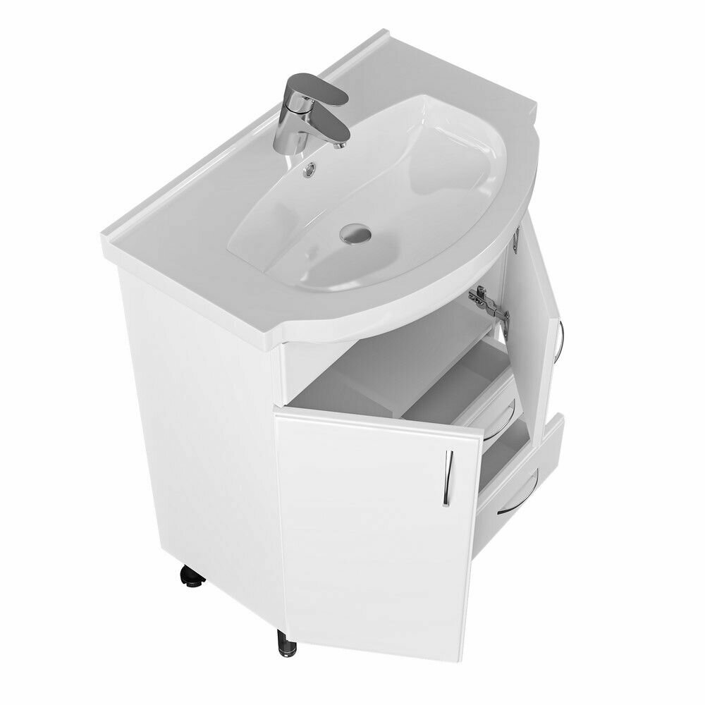 Тумба с раковиной Санта Элеганс 65 2 ящика изготовлена из качественных материалов в современном элегантном стиле. Поможет в создании ультрамодной ванной комнаты с сохранением актуальной функциональности. Предназначена для использования в условиях повышенной влажности.